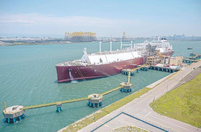 蓝白痛批民进党当局错误能源政策造成安全危机。图为“Global Sealine”靠泊台湾中油公司台中液化天然气接收站高开网。(台湾中油公司 台湾《中国时报》)